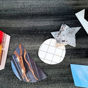 – kolaž – aktivacija negativnega prostora – praznin, povezovanje (sedmih) oblik v različne vsebinske in likovne celote – postavitve, princip variacij, gibanja in kroženja elementov brez lepljenja, izdelava različnih (temnih) podlag in izraznih elementov, uporaba kolaža za opazovanje in upodabljanje narave